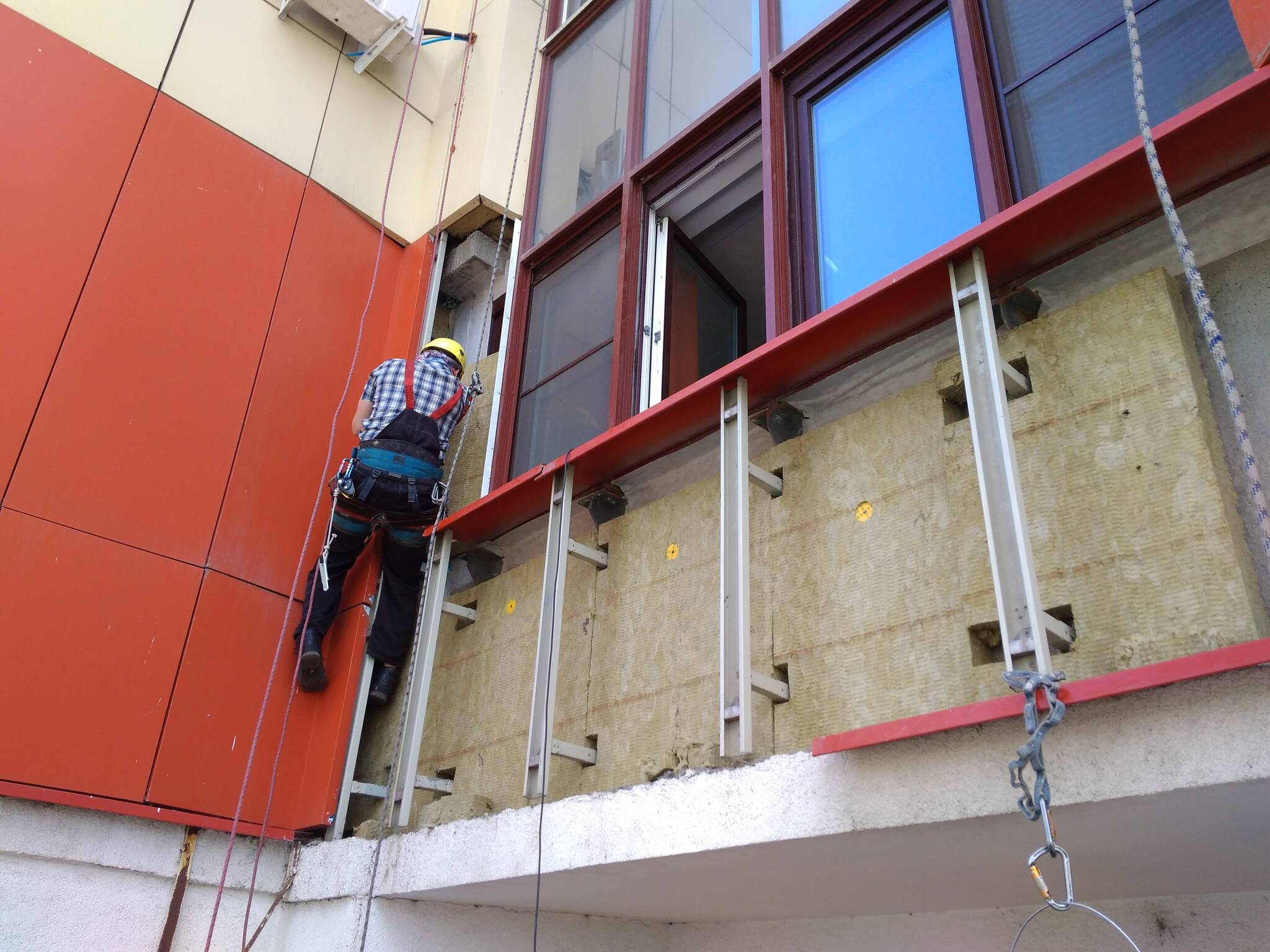 Разметка, установка кронштейнов и утеплителя, монтаж направляющих профилей и фиксация облицовочных материалов.